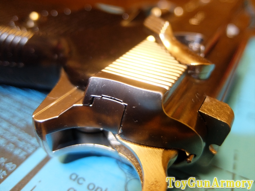 さらに、スライドには、デコッキングを兼ねたセーフティレバーが備えられており、